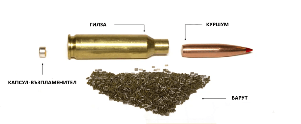 Всички съвременни боеприпаси, независимо от патрона, калибъра или габарита, се състоят от капсул-възпламенител, гилза, куршум(и) и барут.